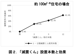 より地震に強い家造りの為にの設置本数を増やすことも可能です。図2に示します様に「GHハイブリッド」設置本数が多くなると効果も増大します。